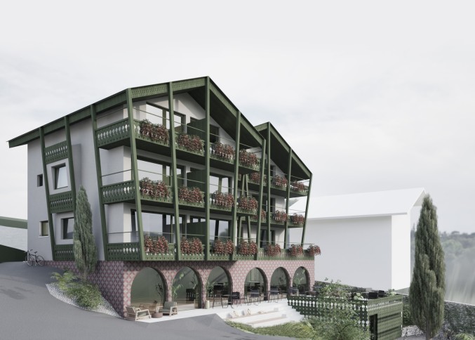 Optisch wollen wir ganz neue Wege gehen und trotzdem traditionell bleiben: Deshalb ist die Fassade eine Hommage an die Häuser in Schenna von anno dazumal.