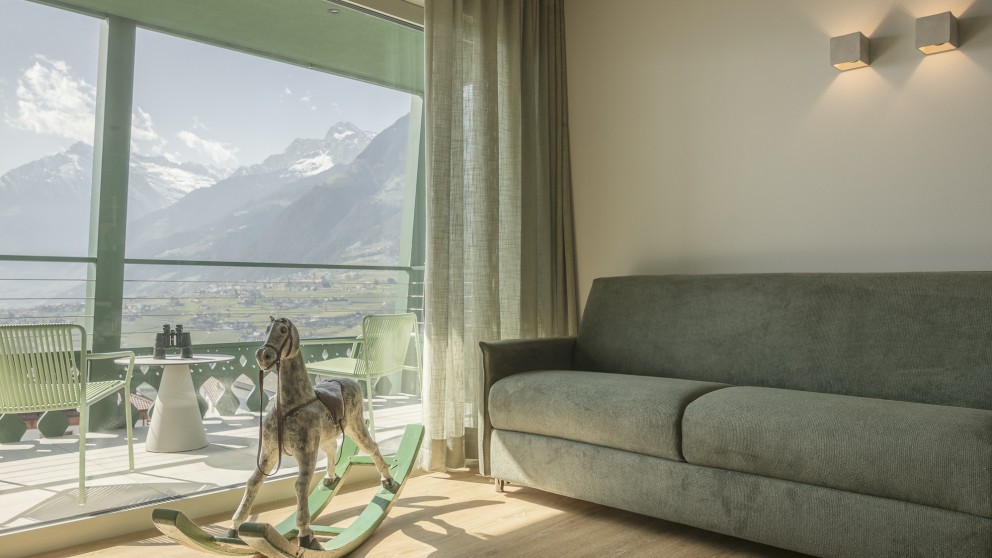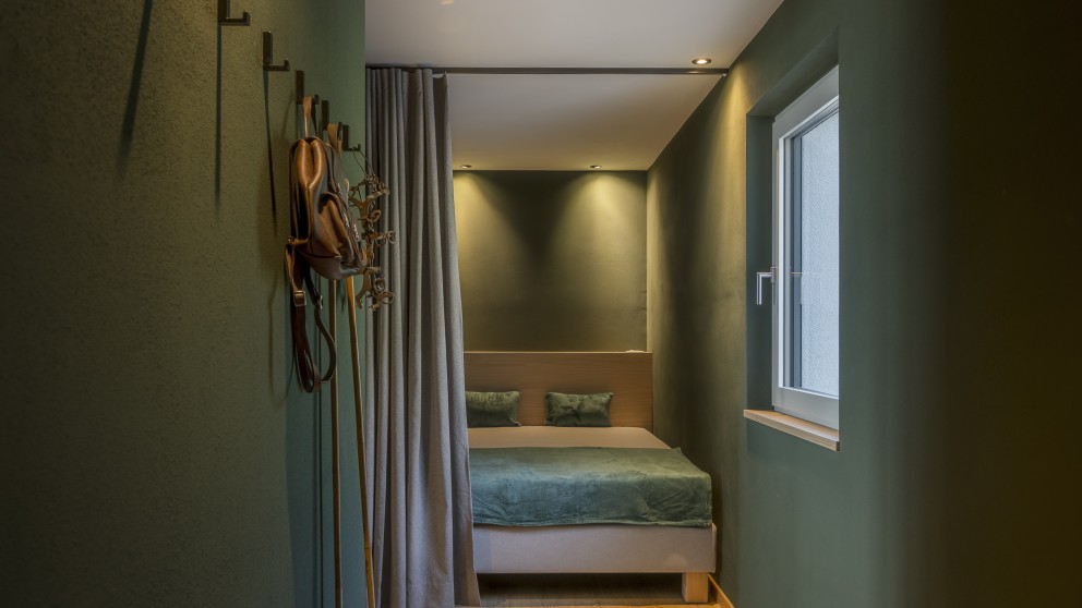 Heini Holzer, Schennas bekannter Alpinist, hat im Haus Höfler gewohnt und gebadet. Im Allgemeinen lieben wir die Alpen und inszenieren diese im Alpinist neu. Ausgestattet ist dieses Zimmer natürlich mit allen Must Haves: Kingsize-Bett, Regendusche, Schreibtisch, Satelliten TV, W-lan, abgetrenntes WC, Schrank, Balkon, ausziehbare Couch und abgetrennter Schlafkoje. Der Ausblick? Fantastisch nach vorne raus.
