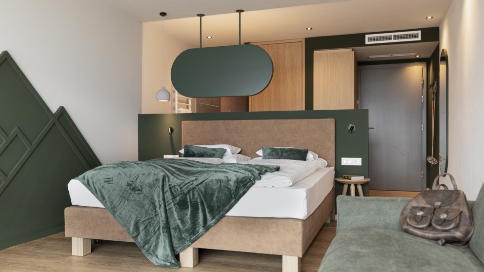 Un omaggio alla voglia che ci attanaglia tutti: fare escursioni. Piccoli dettagli in camera fanno da sfondo all'area escursionistica circostante. Naturalmente, questa camera è dotata di tutti i must: letto king-size, doccia a pioggia, scrivania, TV satellitare, Wi-Fi, lavabo indipendente, WC separato, armadio e balcone. La vista? Fantastica verso sud.
